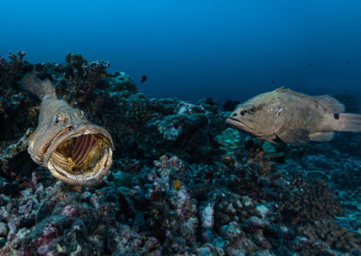 Habitat, abri, garde-manger, lieu de prédation autant que de procréation, la passe est l’organe vital singulier qui orchestre les comportements, assure l’équilibre de l’atoll, et voit se jouer chaque jour la survie des millions de poissons qui la peuplent.