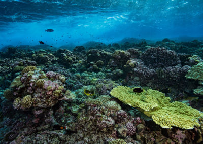 Habitat, abri, garde-manger, lieu de prédation autant que de procréation, la passe est l’organe vital singulier qui orchestre les comportements, assure l’équilibre de l’atoll, et voit se jouer chaque jour la survie des millions de poissons qui la peuplent.